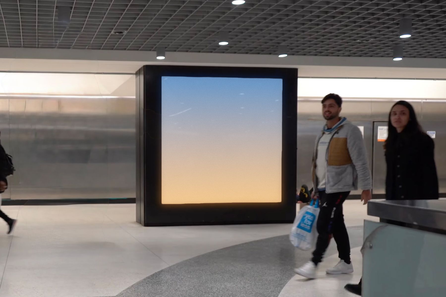 A site-specific digital work for windowless spaces that restores environmental awareness: instead of numerical time, a slowly shifting gradient reflects real-time sun position and weather conditions.